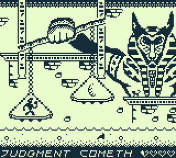 I love making 1-bit art, I love the Game Boy, and the theme is fun. To depict "balance", I've chosen a scene from an imaginary action platformer from my fictional youth: Action Guy and the Lost Egyptian Tomb. We've made our way to the end of the level, and the boss appears! Anubis himself is here to judge us, how will we survive?! Maybe that cat knows a secret. The ancient Egyptians certainly seemed to believe cats were wise!